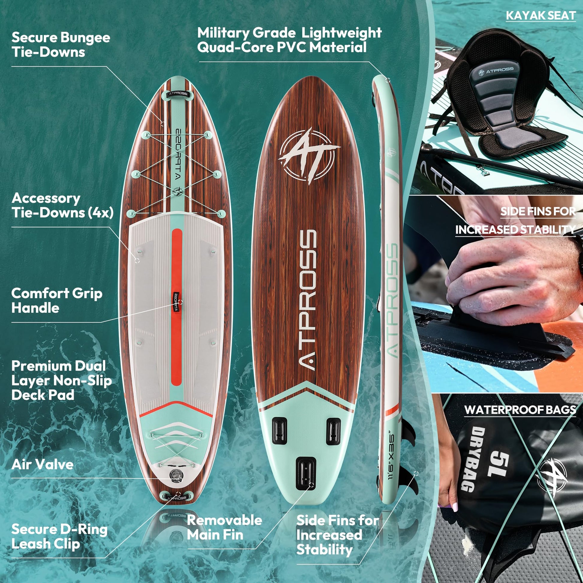 - 🏄【Outstanding Style Design】The paddleboard inflatable uses a unique wood grain pattern design, combined with green color, is very natural vitality, highlighting the concept of environmental protection, allowing you to stand out from the crowd, showing taste and fashion, full of fun and adventure.