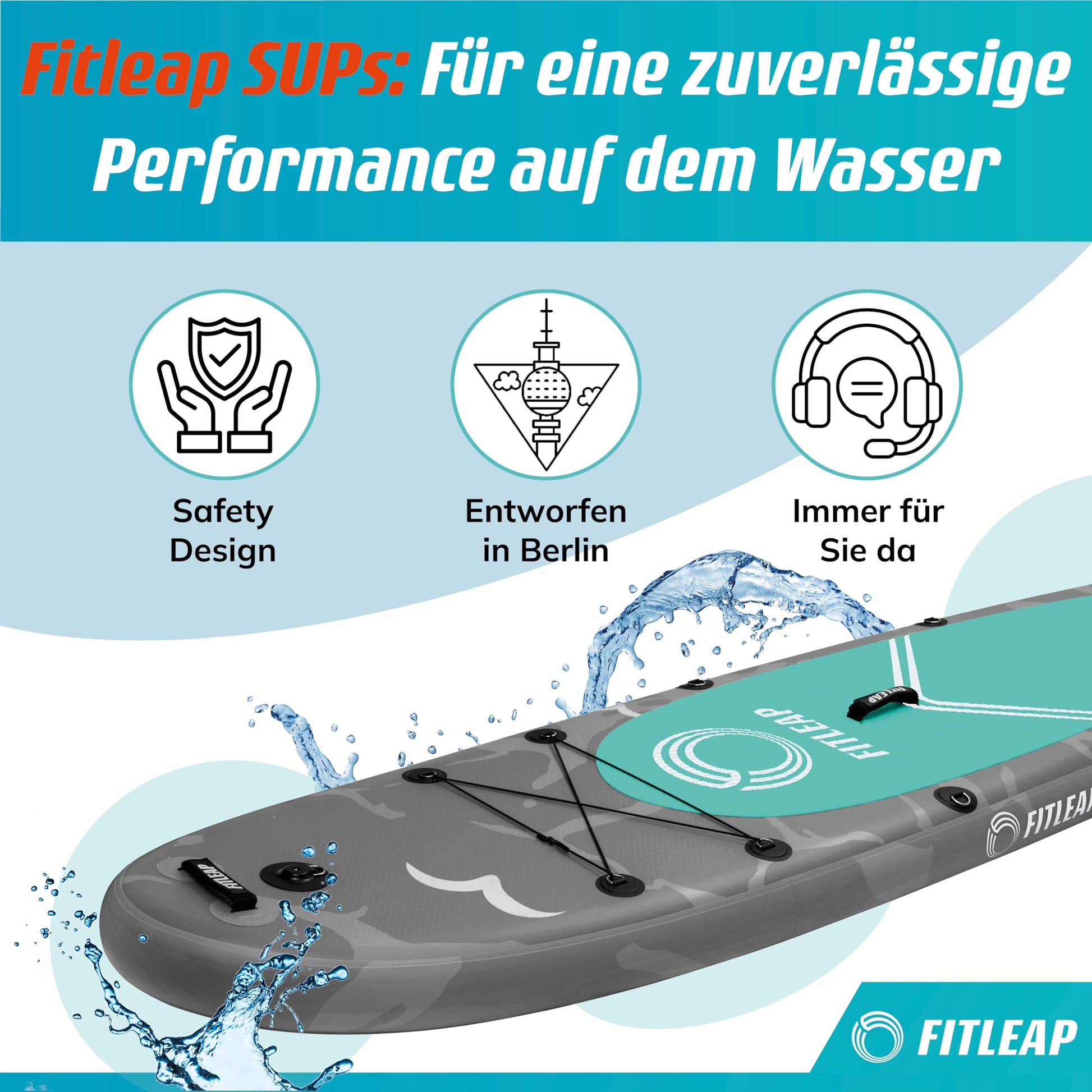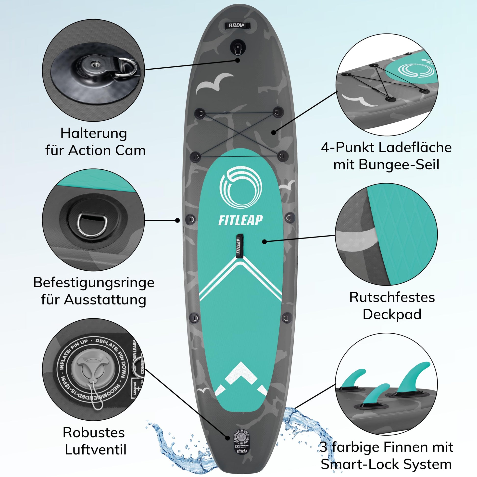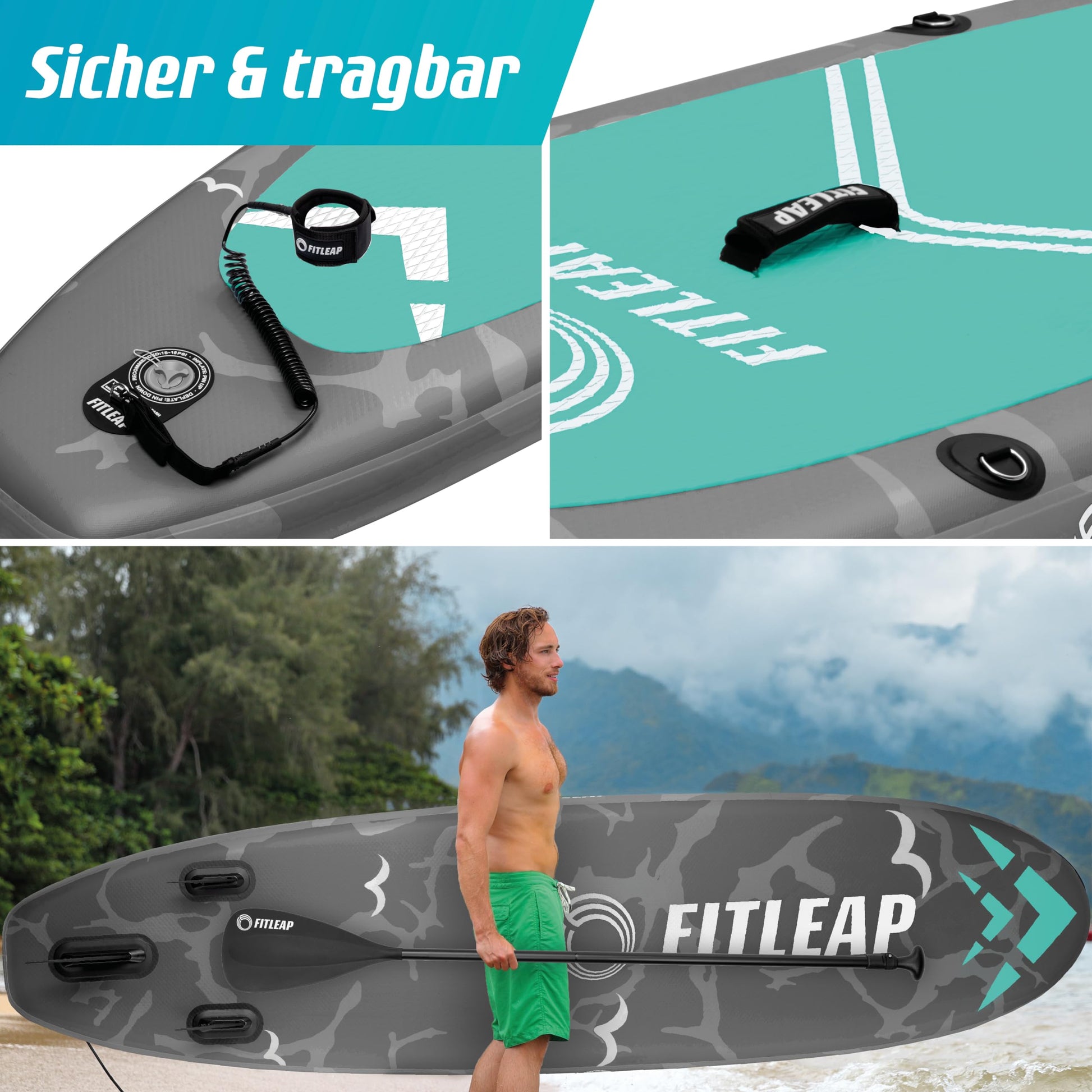 Fitleap Aufblasbares Premium SUP Board – Set mit Pumpe, verstellbarem Paddel & Rucksack – Für Anfänger & Profis, Yoga & Wassersport