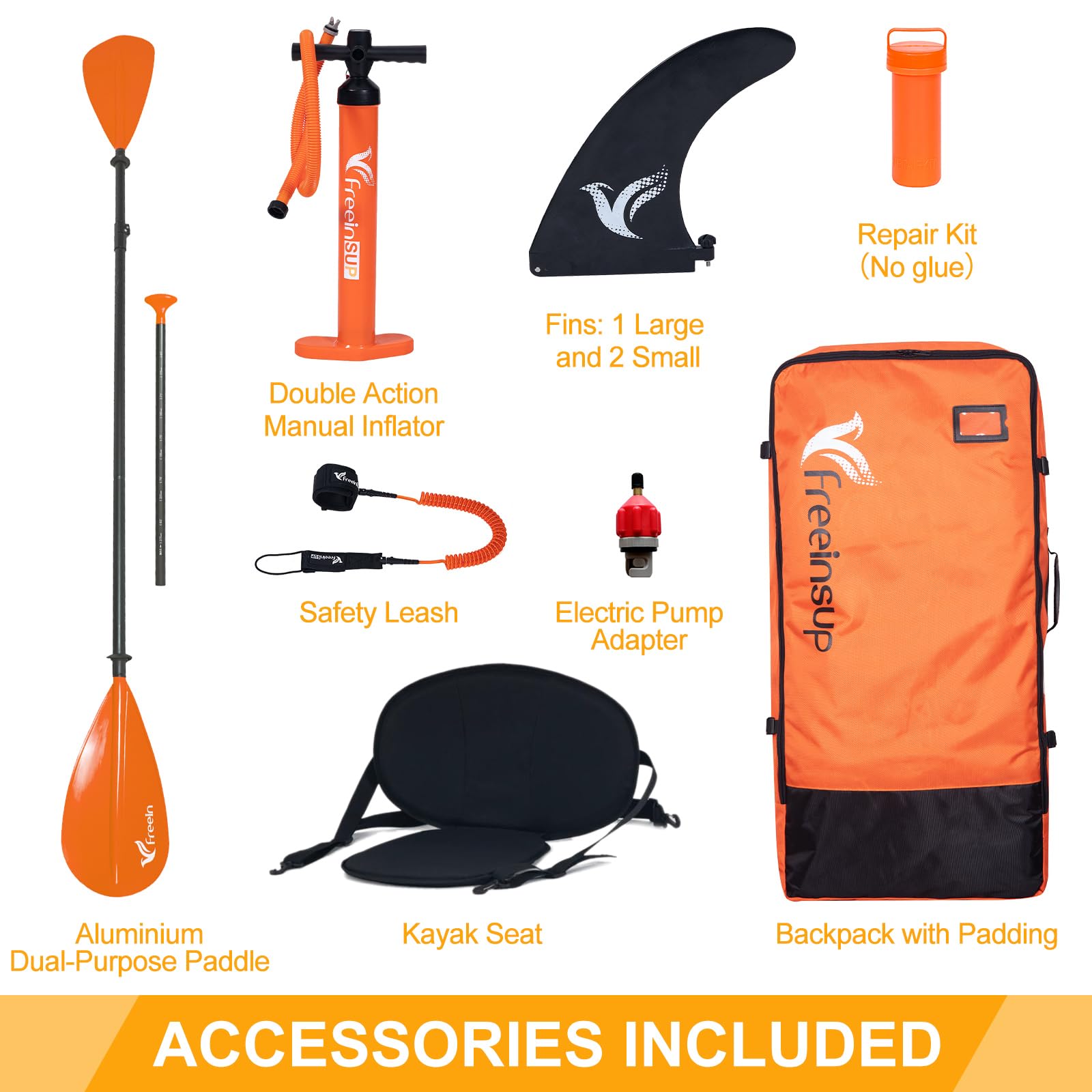 Freein SUP Aufblasbares Stand Up Paddle Board mit Kajak Sitz, SUP Boards für Erwachsene 335x84x15cm Stand-Up Paddling ISUP Zubehör Pump Adapter, SUP Kajak Paddel